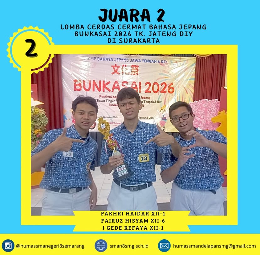 Lomba Cerdas Cermat Bahasa Jepang Bunkasai 2026 – SMK Negeri 7 Surakarta Prestasi yang lahir dari ketekunan belajar, kekompakan tim, dan semangat mencintai bahasa serta budaya Jepang.