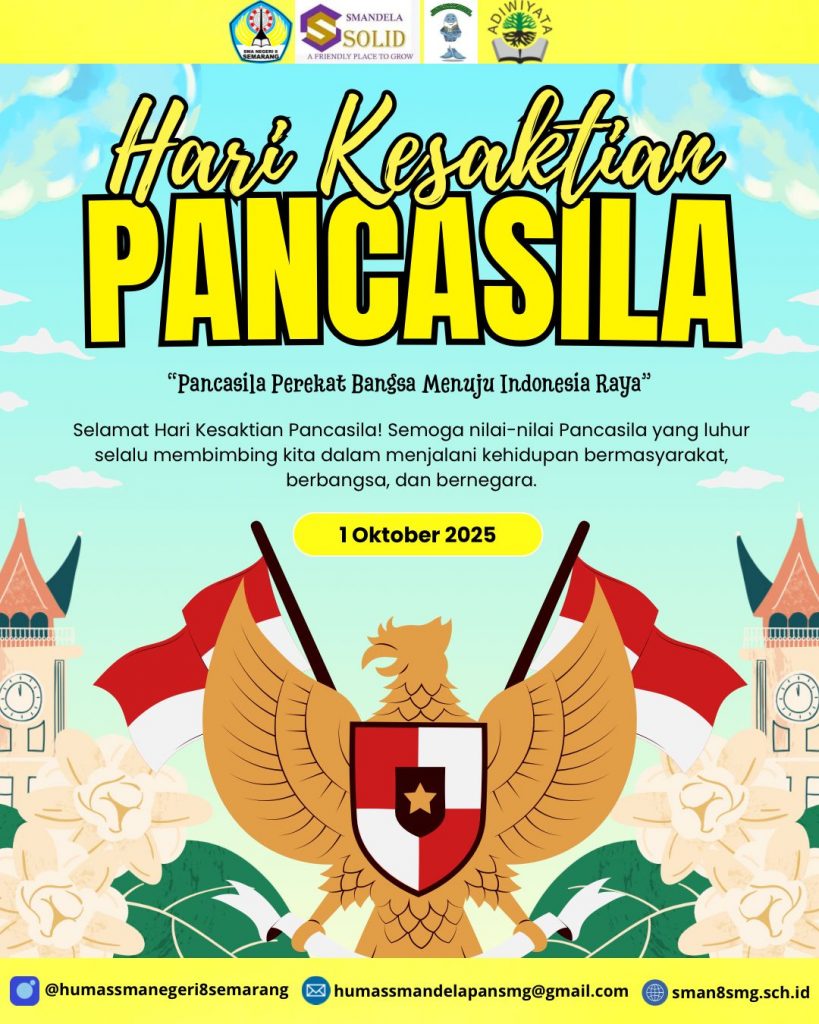 Upacara Hari Kesaktian Pancasila 2025 di SMA N 08 Semarang pada hari rabu tanggal 1 oktober 2025 di lapangan utama smandela. Pembina Upacara adala Kepala Sekolah, Bapak Ajib Setiyo, S.Pd., M.Pd.