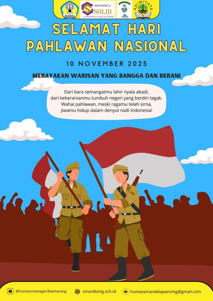 Upacara Hari Pahlawan Nasional 2025 November 10, 2025 admin Selamat Hari Pahlawan! Mari isi kemerdekaan dengan semangat belajar, bekerja, dan berbakti tanpa lelah.